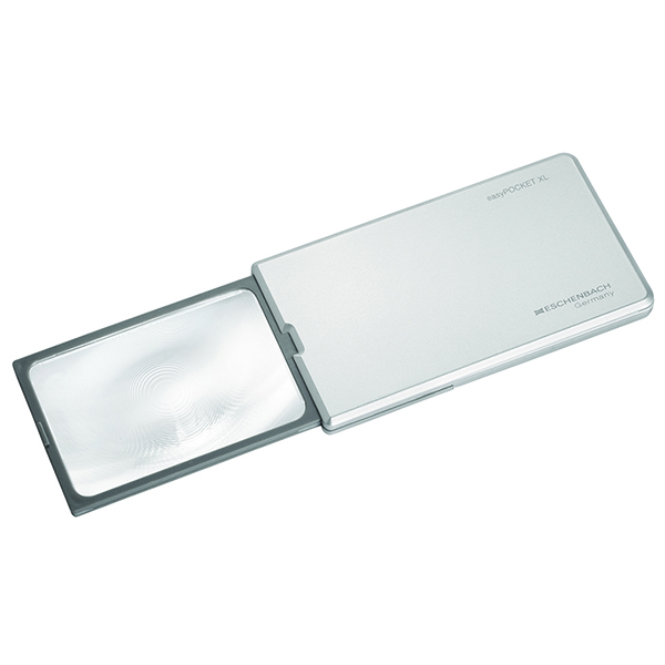 The easyPOCKET XL features a large 75x50mm aspheric / diffractive hybrid lens that is distortion-free and extremely thin (only 3 mm). Bright illumination is provided by SMD LED technology, with bulbs that never need to be changed. Plus, with a built-in sensor, the light conveniently goes on and off when the magnifier is opened and closed. It also includes a pull-out stand for use as a hands-free magnifier!