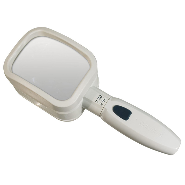 COIL Raylite Duo Stand Magnifiers rest on top of the material being viewed, making them appropriate for longer reading tasks. They feature an Easy Press switch that allows the user to easily switch them on and off without hand and finger strain or pain. There are 2 brightness settings: High Brightness provides more illumination for rooms with poor lighting and for larger lens sizes, while Low Brightness is meant for bright rooms and smaller lens sizes.