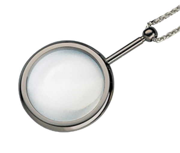 Pendant magnifiers are the inconspicuous ideal magnifier for those that need a little extra help throughout the day. Attractive and always at hand, they feature a glass lens to resist scratching from contact with buttons, zippers, or other jewelry. Mounts, handle, and chain are chrome – plated metal.