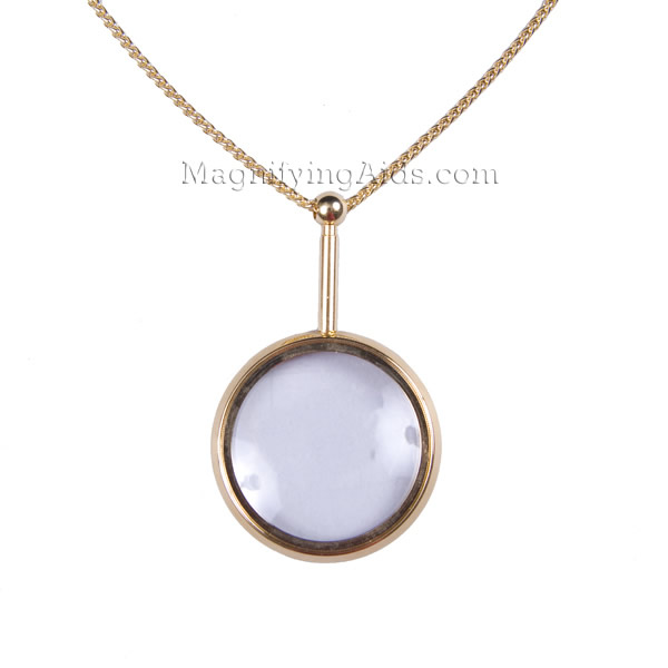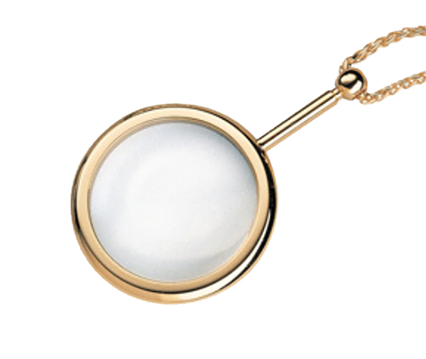 Pendant magnifiers are the inconspicuous ideal magnifier for those that need a little extra help throughout the day. Attractive and always at hand, they feature a glass lens to resist scratching from contact with buttons, zippers, or other jewelry. Mounts, handle, and chain are gold – plated metal.