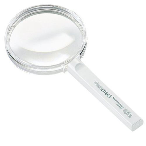 The Visomed series of hand-held magnifiers features low magnification and a large field of view. These attributes make them ideal for early intervention for low vision patients needing extra magnification for such daily living tasks as reading small print labels, telephone numbers, or reading the stock market pages.