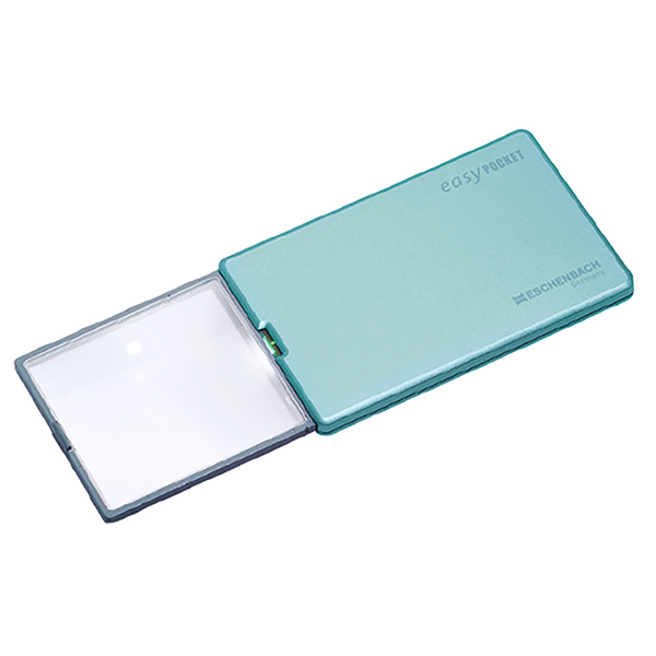 This 4X magnification easyPOCKET features a unique 50x46mm aspheric / diffraction hybrid lens that is distortion-free and only 3 mm thick. Bright illumination is provided by new SMD LED lighting that never needs to be changed. Plus, with a built-in automatic contact mechanism, the light conveniently goes on and off without a switch. The easyPOCKET is protected by a strong glass-fiber reinforced plastic case that minimizes lens scratching.