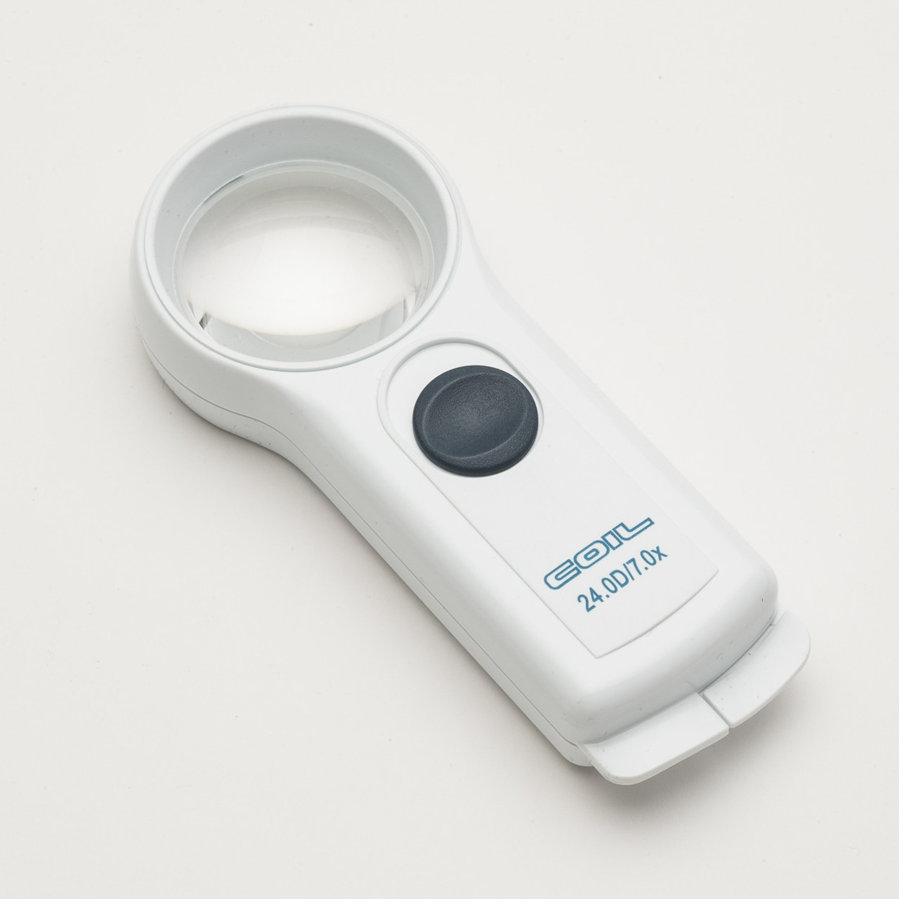 Coil 7X / 24D is compact, lightweight and small enough to fit in a pocket or handbag. Lenses measure 1.88 inches and handles measure 3 inches. Bi – aspheric lenses are optimized for minimum distortion and maximum clarity. The LED version offers extended battery life and substantially longer bulb life. Comes with a protective pouch.