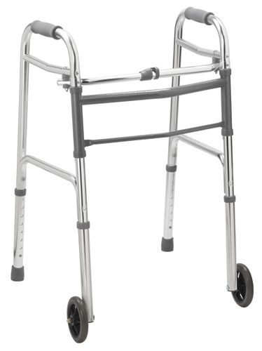 The Adult One-Button Folding Walker with 5″ Wheels is a durable, lightweight mobility walker designed to provide stability, comfort, and ease of movement for everyday use. Built from 1″ anodized aluminum tubing with a sleek silver finish, this adult walker with wheels offers reliable support without unnecessary weight.
