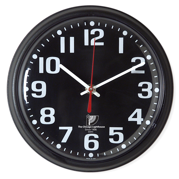 Chicago Lighthouse 9.25″ Low Vision Quartz Wall Clock – Black Face with White Numbers