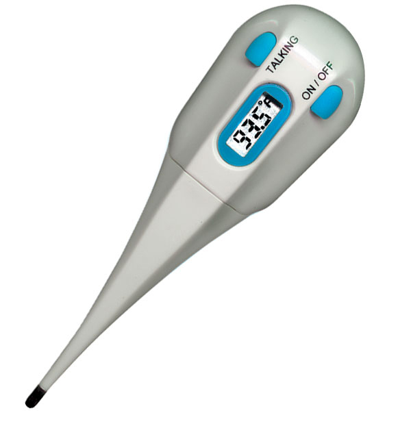 A pleasant human voice automatically reports your measured temperature. This talking thermometer makes temperature taking fun for kids and adults alike and is indispensable for the visually impaired. Audio announcement and LCD digital readout within 90 seconds, auto shut off. For oral, rectal or underarm use. Can be used by adult or child. Uses 2 AG-12 Batteries (included) Non returnable item.