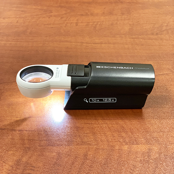 With Mobase, Eschenbach Mobilux® LED can also be used as a stand magnifier – both in the flat position for tremble-free reading and viewing, as well as in an upright position which leaves both hands free to carry out work behind the magnifier.