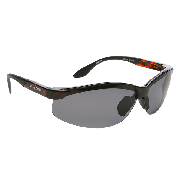 All SolarComfort® filters block 100% of UVA/UVB rays and are made with bend-to-fit temples for a custom fit. Frames are made of lightweight nylon 66. The tinted lenses block visible light in the following wavelengths: gray and plum lenses (400nm); yellow (450nm); amber (511nm); orange (521nm).