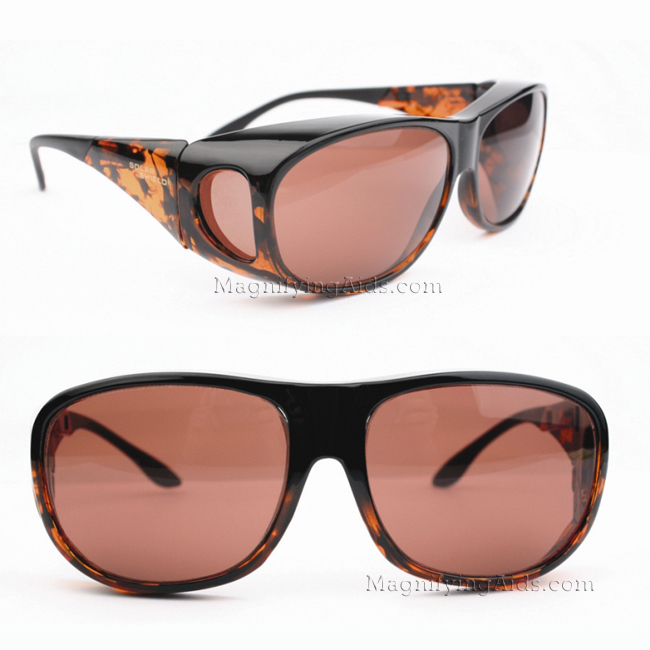 Large frames [replacing Aviator] fit over Rx frames not exceeding: 6″w x 2″h : 153mm x 49mm. The plum poly-carbonate lens provides moderate blue light filtering, which is ideal for reading and watching television. It blocks 100% UVA/UVB light and 100% visible light up to 521nm.