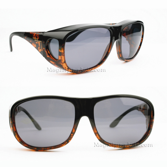 Large frames [replacing Aviator] fit over Rx frames not exceeding: 6″w x 2″h : 153mm x 49mm. The gray polarized lens provides true color presentation and is ideal for outdoor as the polarization eliminates reflective glare. It blocks 100% UVA/UVB light and 100% visible light up to 400nm.
