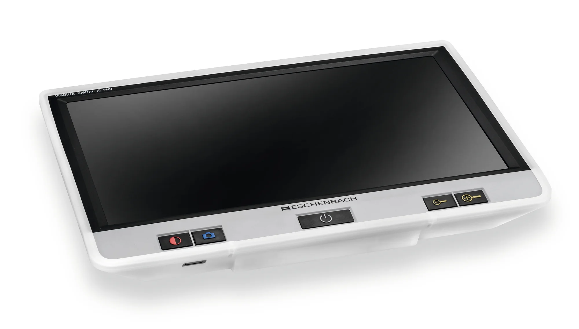 Visolux Digital XL FHD Bumper is a rubber cover that wraps around the Visolux Digital XL FHD video portable magnifier to minimize damage if dropped. It also provides a comfortable grip around the unit so that it does not slide out of the users hands while holding.