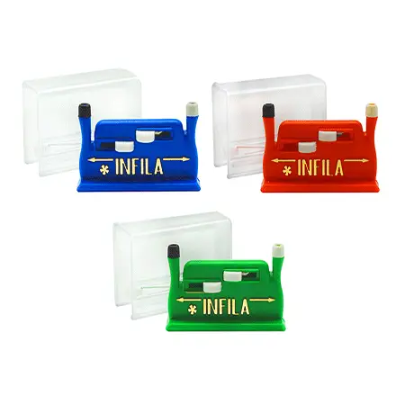 Automatically threads large or thin needles. Simple push button operation for single or double threading.