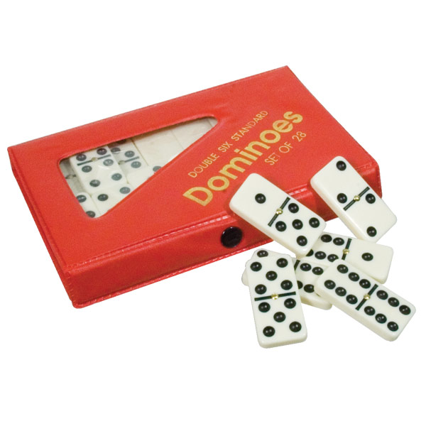 These very large dominoes have a high contrast black on white design, and the dots are indented for tactual identification. quick Metal spinners for easy mixing make this set unique. Comes in handy storage box. Each of the 28 Double Six dominoes measures 1 x 2 inches.