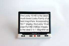 The Looky 10 is the largest-screen handheld device on the market, and for a price lower than many 7-inch models. Looky 10 has a large enough screen to replace most uses of a desktop magnifier, for a much lower cost and in a very compact size.
