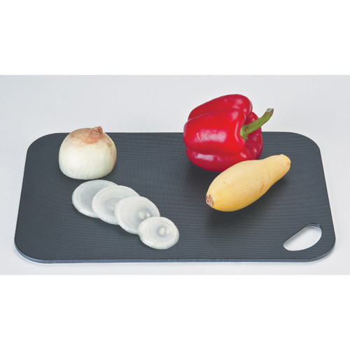 This heavyweight, durable cutting board will be of service for many years to come. Don’t confuse this one with flimsy versions sold elsewhere! This heavy duty white board reverses to black and is so solid in construction we guarantee it for life! Polyboard is odorless, sanitary, unbreakable and resists scratching. Won’t dull knives. Built in handle lets you carry it from counter to table to stove. Every kitchen should have one! This cutting board measures 15 ¾” x 10″