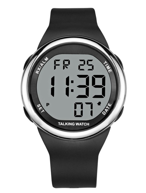 This talking atomic watch can set and re-set itself any time there is a change for Daylight Savings. The user must manually set the time zone, but once the time zone is set, the user never again needs to set the time. This talking atomic watch never needs to have its time or date set/adjusted because it receives a low frequency radio signal each night that keeps it perfectly synchronized with the US atomic clock in Colorado.