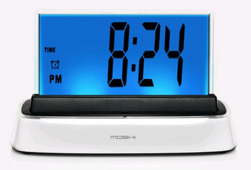 An amazing, modern styled talking clock, calendar, thermometer, nightlight etc. that is totally voice controlled. When AC power is plugged in you may talk to the moshi, say hello moshi and it will respond. When only running on batteries you have to wake it up by touching it once and then control it totally by voice.