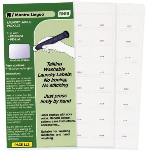 Label your clothes using your own voice. Use your RNIB PenFriend to record the pattern, color and care instructions of your entire wardrobe onto these self-adhesive labels, and never leave the house with odd socks or a mismatched outfit again!