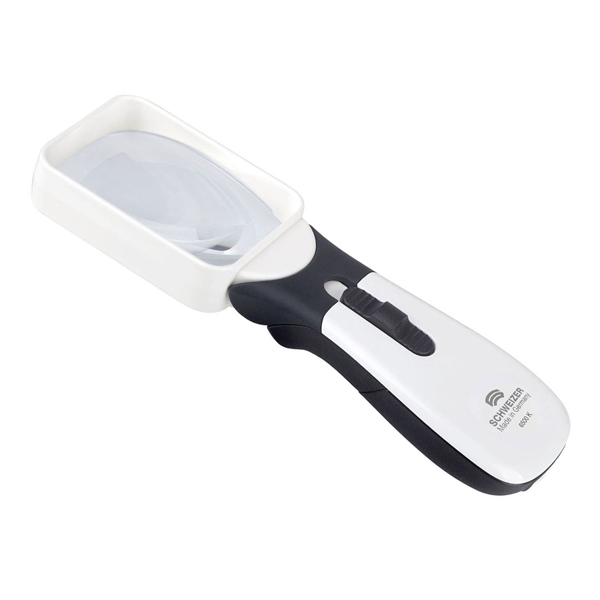 Schweizer’s innovative new hand held magnifiers bring quality, technology and design to the world of optical magnification. Several features make them a great option for the low vision user. The ERGO-Lux MP (Multi Power) mobile series comes in a choice of 11 different powers, ranging from 6D (2.5X) to 56D (15X). LED illumination evenly disperses over the entire viewing area, thanks to the multi-chip SMD LED technology which provides an even spread of light and the precise adjustment of light intensity. The brightness level can be controlled with the 2 step Multi-Power (MP) boost switch. The smooth gliding button offers 2 levels of illumination, with an audible click to mark the different steps of illumination. This battery operated magnifier works on 3 AAA batteries (included, for greater convenience.) 18 hours of illumination offered at the lower power of illumination, and 10 hours at the higher level.