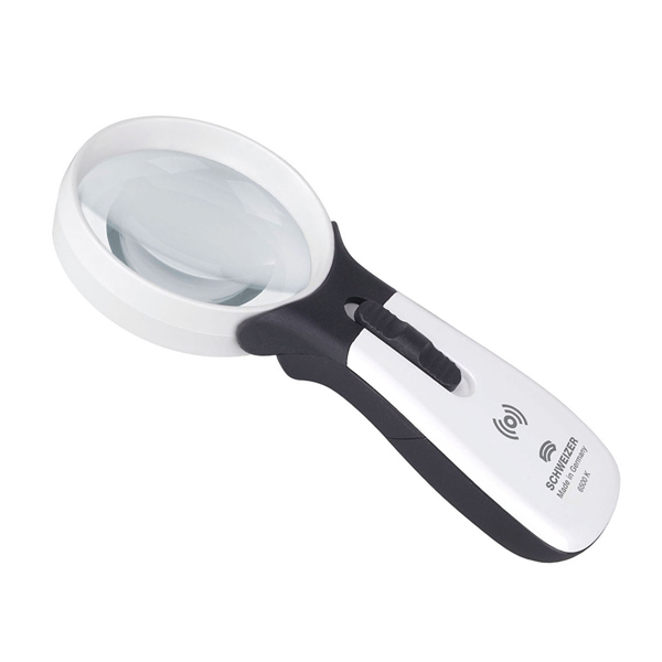 Schweizer’s innovative new hand held magnifiers bring quality, technology and design to the world of optical magnification. Several features make them a great option for the low vision user. The ERGO-Lux MP (Multi Power) mobile series comes in a choice of 11 different powers, ranging from 6D (2.5X) to 56D (15X). LED illumination evenly disperses over the entire viewing area, thanks to the multi-chip SMD LED technology which provides an even spread of light and the precise adjustment of light intensity. The brightness level can be controlled with the 2 step Multi-Power (MP) boost switch. The smooth gliding button offers 2 levels of illumination, with an audible click to mark the different steps of illumination. This battery operated magnifier works on 3 AAA batteries (included, for greater convenience.) 18 hours of illumination offered at the lower power of illumination, and 10 hours at the higher level.