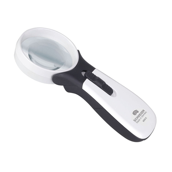 Schweizer’s innovative new hand held magnifiers bring quality, technology and design to the world of optical magnification. Several features make them a great option for the low vision user. The ERGO-Lux MP (Multi Power) mobile series comes in a choice of 11 different powers, ranging from 6D (2.5X) to 56D (15X). LED illumination evenly disperses over the entire viewing area, thanks to the multi-chip SMD LED technology which provides an even spread of light and the precise adjustment of light intensity. The brightness level can be controlled with the 2 step Multi-Power (MP) boost switch. The smooth gliding button offers 2 levels of illumination, with an audible click to mark the different steps of illumination. This battery operated magnifier works on 3 AAA batteries (included, for greater convenience.) 18 hours of illumination offered at the lower power of illumination, and 10 hours at the higher level.