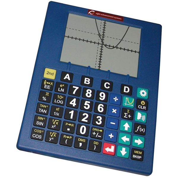 The SciPlus 3500 is the only talking scientific graphing calculator designed specifically for users with low vision. SciPlus 3500 is an easy to use, fully portable, talking, large display scientific graphing calculator featuring an enlarged keypad with high contrast and 0.7-inch tactile keys. Talking function enables speech output in either English or Spanish (can be turned off when not needed). Other features include a generous 6-inch, four-line display with adjustable contrast, adjustable backlight, inverse video, lightweight portable design and long life battery. USB charger and convenient protective carry case also included.