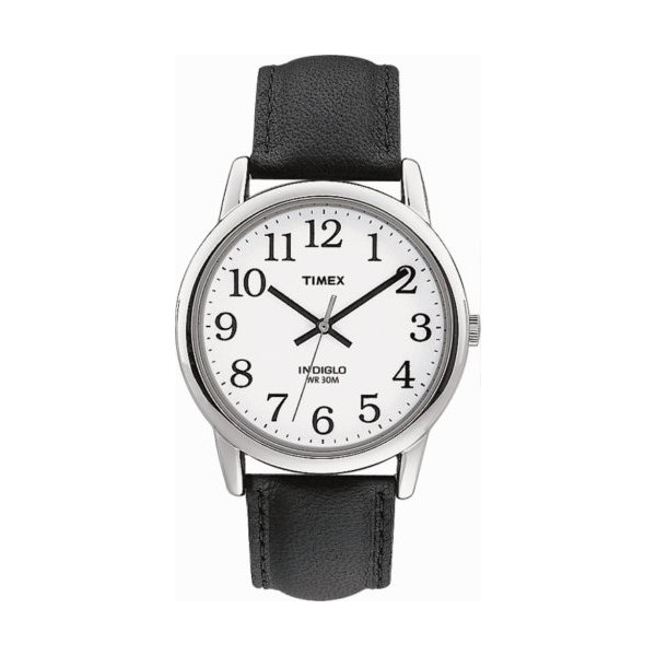 The Man’s Easy Reader Black Leather Strap Chrome-Tone Case Watch by Timex is for the guy whose style sense is understated yet classic. While the watch doesn’t feature all the bells and whistles, don’t underestimate its simplicity for lack of functionality. The metal Chrome-tone case contrasts the rich, durable black leather strap. The pristine white dial has bold, black, easy-to-read numerals and slender black baton-style hands and sweeping seconds hand. The watch is water resistant to 30 meters.