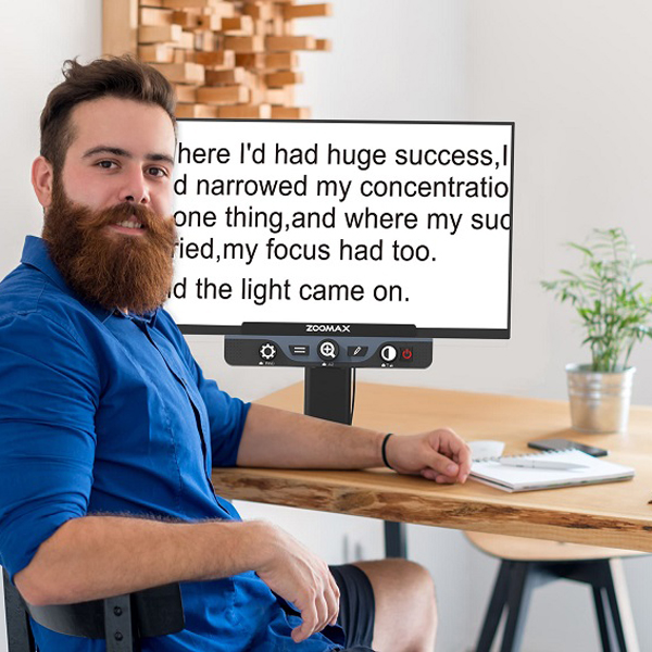 Magnification, contrast, and brightness are all easily adjustable on Luna HD 24 Pro, and the easy-to-use controls are placed beneath the video screen. Navigation around the text has never been easier. Besides, as an all-in-one desktop electronic video magnifier, Luna HD 24 Pro does not require installation or pre-charging. Unpack the box of Luna 24 HD Pro, set it up, plug it in, and then the user is able to use it straight away.